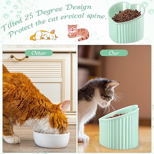 Tilted and Elevated: the size of this ceramic cat bowl is about 5.51 x 4.72 inches/ 14 x 12 cm, designed with inclined 25 angles, which makes your pets comfortable when having food, the elevated design can reduce the burden on their necks, and with proper depth, this cat bowl is also suitable for pet snacks