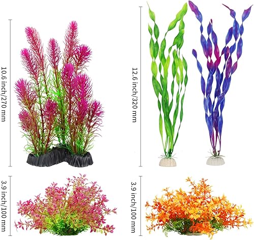 Plastic artificial plants range in height from 3.9 to 12.6 inches, making them a great fit for your tanks and larger. They are suitable for a variety of fish tanks. Note: Plastic water plants may get squeezed and deformation during packaging, put into 104 - 140℉ warm water get restored