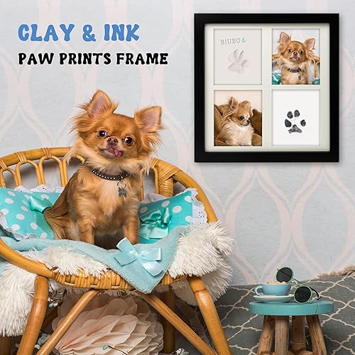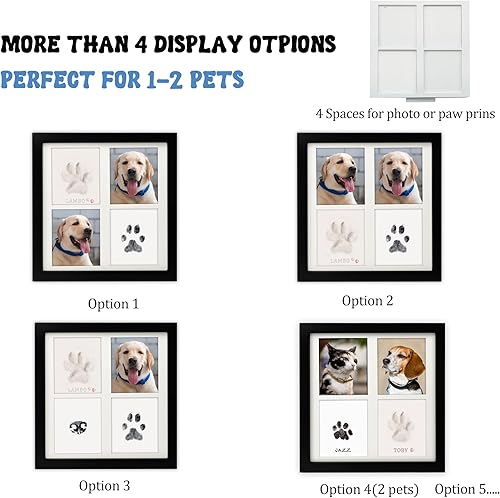 【Clay & Ink Pet Paw Print Kit】 Be different from other's dog paw print kits,we provide both ink pads and imprint clay for you to capture your pet's paw prints.Both will accurately record your pet's paw prints tiny marks.And we offer four frames for the photo frame. You can display the clay and ink paw prints together in the frame and add on two photos of your pet. A perfect and unique pet keepsake is complete. With this kit, even as the years pass, the memories of you and your beloved pet will live on forever.