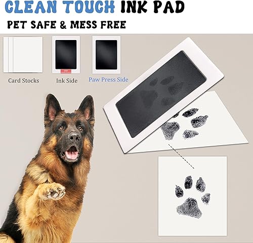【Pet Safe Soft Clay & Inkless Ink Pad for Dog Paw Print】Our paw print impression clay is food grade, very soft and easy to imprint.Safe to use even for kittens or puppy(puppy paw print kit).Just knead for 1-2 minutes to roll flat and it will accurately capture the subtle marks on your dog or cat's paw prints. It won't dry out and crack after air drying, the paw prints are still clearly visible! The Clean-Touch Ink pad capture your pet's paw prints in ink and does not leave ink marks on your pet's paws or skin. No cleanup required after use. Both the clay and ink are 100% safe for your pet! Even for kittens,puppies and babies!