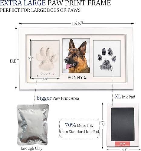 【Forever Paw Print Keepsake】The clay paws and ink paws you get will last forever after air dried.Assemble them in the Quality pet memorial picture frame with protective glass(plexiglass).Premium dog frame with stand and sturdy hook can stand on a table or hang on the wall.