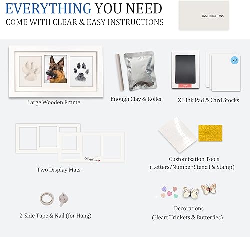 【Pet Memorial & Pet Lover Gifts 】Paw print kit for dogs/cats/pets can be customized.Whether as a paw print keepsake for your own pet or as a pet keepsake gifts for someone else,It is a Perfect choice,(dog lovers gifts for women/pet lover gifts). It turned out adorable and has customization tools and decoration to make the paw clay and pet frame more beautiful. No Doubt that the pet owner will love it !