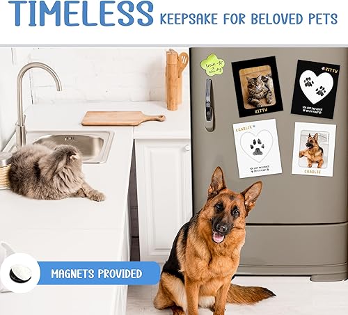 【Timeless Paw Print Keepsake】We provide four paper frames and magnets for you to store and display pet's paw prints on a refrigerator .With“You left paw print on my heart”printed on it,The heart-shaped paper frame is Adorable and Unique!It's paw print ornament too!What'more,our frame comes with film to permanently retain your pet's paw prints.