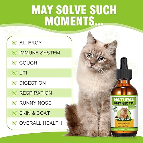 Safe and Easy to Use: Natural antibiotic for cats is a liquid supplement, simply take the recommended dosage orally or add it to your pet's favourite food or water.Health Supplement for cat's natural ingredients help pets cope with a wide range of common problems: acute and chronic problems, anti-allergies, accelerated healing, and more