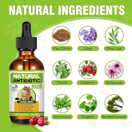Cats' Health: Our antibiotics for cats is carefully formulated with a wide range of organic ingredients to meet the specific health needs of cats, cat antibiotics helps to rejuvenate cats quickly through the power of nature and a balanced blend of ingredients.Natural antibiotics for cats fights off a wide range of problems and ensures that your cat's health is safeguarded