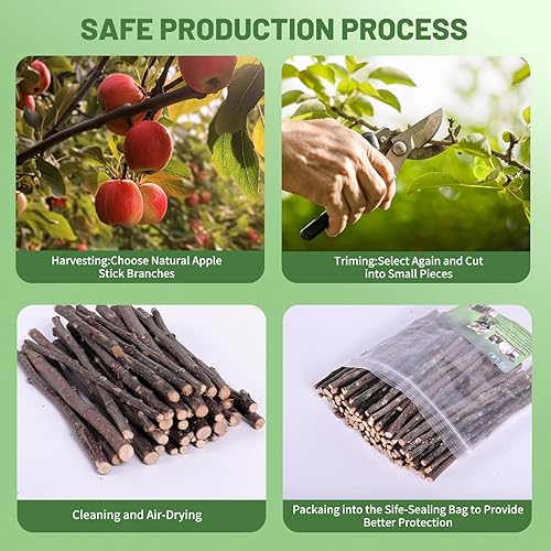 Natural and Safe: Apple sticks made from FSC-Certified wood, selected raw materials and refuse to add. On the premise of retaining the original fragrance of apple branches, it is dust-free, pollution-free, high dryness, and easy to store, which guarantee your pet babies safely chew.