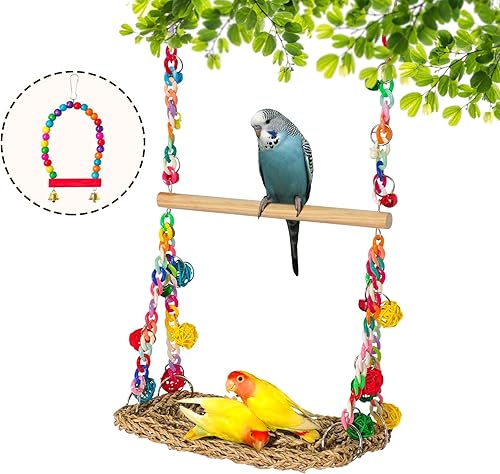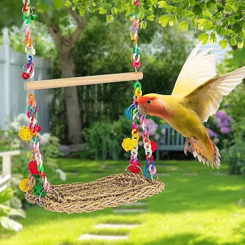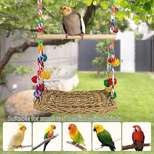 Natural Materials: Crafted from seagrass, bird-safe wood, and durable metal chains, ensuring a healthy environment for parakeets, conures, cockatiels, lovebirds, and other small birds.
