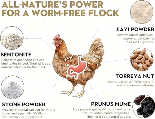All-Natural & Effective Chicken Dewormer:Safeguard your flock’s health with our all-natural chicken dewormer. Specially formulated to support digestive wellness, this powerful poultry wormer effectively eliminates internal parasites—so your chickens stay healthy, happy, and protected.