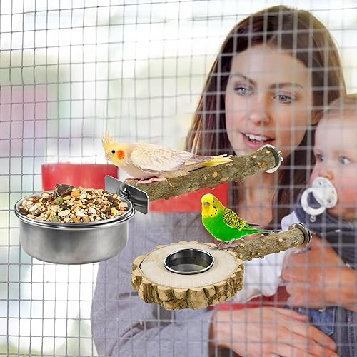 【Durable Construction】Made from high-quality stainless steel materials, the perch and food container are built to withstand daily use and are resistant to rust and corrosion. Hanging in the cages, It can be used for hold food or water, prevents your bird from accidentally tipping food and water bowl.