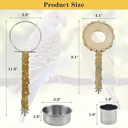 【Secure Attachment】Equipped with sturdy clamps, the perch securely attaches to most bird cages, providing stability during use. Bird bowls easily removed from holder, conveniently install inside or outside the bird cage.