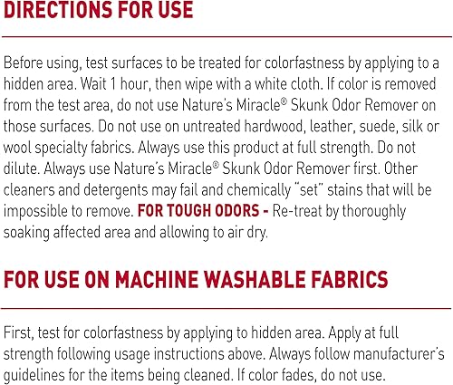Comment on "Nature’s Miracle Skunk Odor Remover, 32 Fluid Ounces, Removes Skunk Odors On Fabrics, Clothing, Carpets And Other Surfaces"