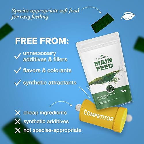 CONTENT: Exclusively using natural ingredients, our formula is free from fish meal and other animal meals, making it ideal for maintaining healthy shrimp tanks.