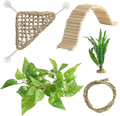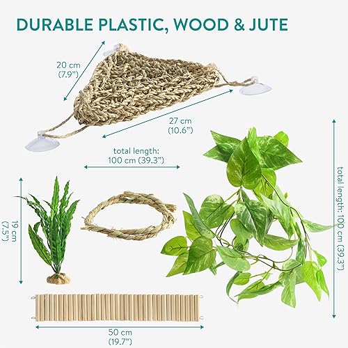 Realistic Aesthetics: The hammock features realistic plants, enhancing the natural look and feel of your pet's habitat while providing them with a comfortable resting place