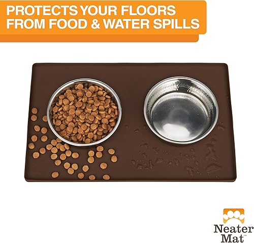 PET MATS PROTECT FLOORS FROM SPILLS: Neater Mat pet mat goes under your cat or dog’s food and water bowls to catch any spills or splashes from getting onto your floor.