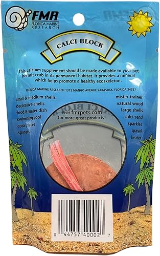 CALCI BLOCK This calcium supplement provides a mineral in which helps promote a healthy exoskeleton for your pet, it should be kept in your hermit crabs permanent habitat.