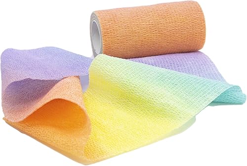 Alternating bright color bands provide a unique, visually pleasing rainbow effect when the cohesive horse bandage is applied