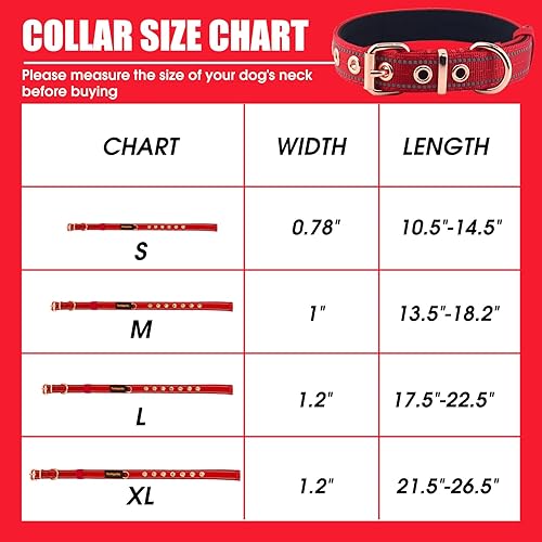 SIZE ATTENTION:Make sure to measure your dog’s neck before placing an order;then refer to the sizing chart;Small(10.5 inch to 14.5 inch);Medium(13.5 inch to 18.2 inch);Large(17.5 inch to 22.5 inch);X-Large(21.5 inch to 26.5 inch);don't choose size by weight and breeds only;select the correct size based on the circumference of your dog's neck