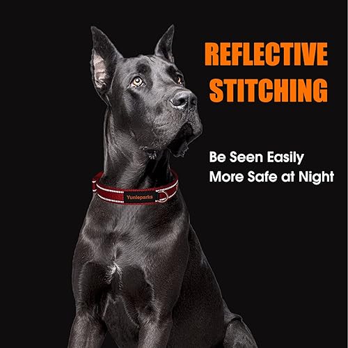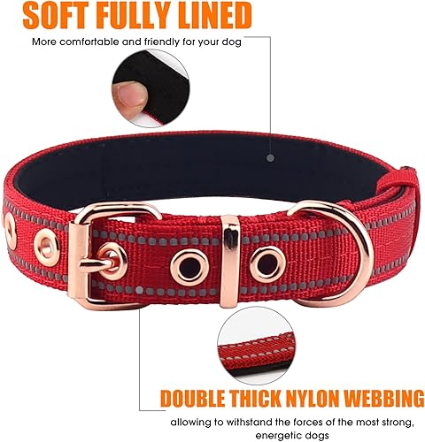 Neoprene Padded Dog Collar, Nylon Collar for Small to Large Dogs, Heavy Duty with Metal Buckle, Reflective(Medium, Teal)(Red,Large (Pack of 1))