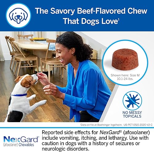 #1-preferred by dogs.² Each NexGard (afoxolaner) flea and tick chewable is easy to give because dogs love the delicious beef flavor.³