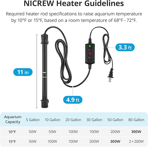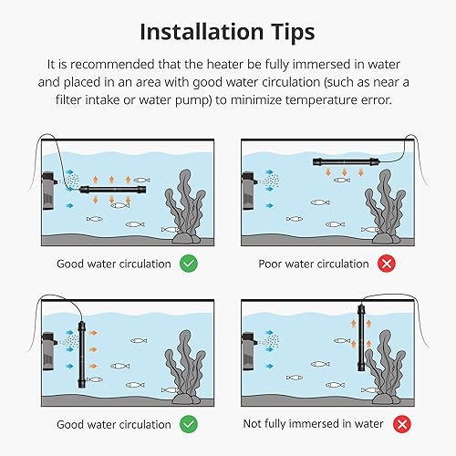 Easy Installation: Includes suction cups for secure attachment to the aquarium wall. It is recommended that the heater be fully immersed in water and placed in an area with good water circulation to minimize temperature error