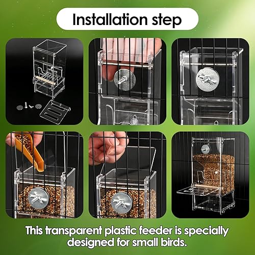 Easy to Install: Place the extended station board in a suitable position (refer to the picture), and then hang the feeder in a suitable position on the cage with the stainless steel plate. Suitable for most cages, it can hold more food