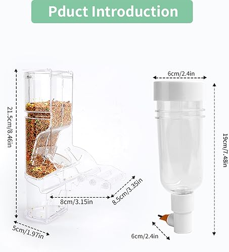 【No Mess Bird Feeder Water Dispenser set】This bird cage feeder is designed with gravity automatic feeding, the bird water dispenser is designed with Spring-loaded valve no need to replenish the food every day, save your time and energy. The transparent structure makes it easy to quickly check the remaining food and water level, convenient for timely addition.
