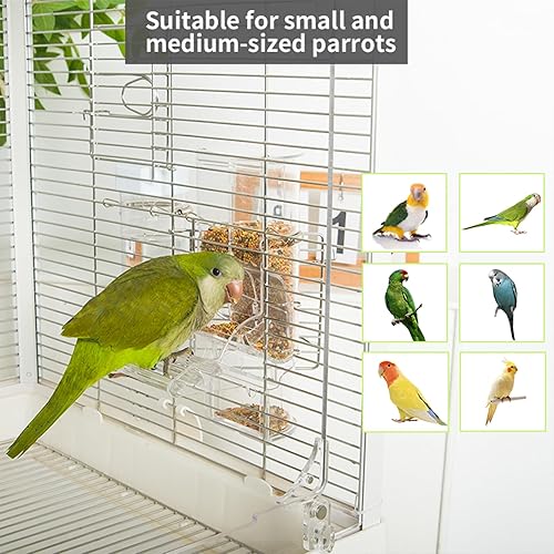 【Easy to Install and Use】Just use the included spring to easily fix it to the cage. It can be installed inside or outside the cage, bird feeder the top cover opens for easy food replenishment, so you don't need to take it off.