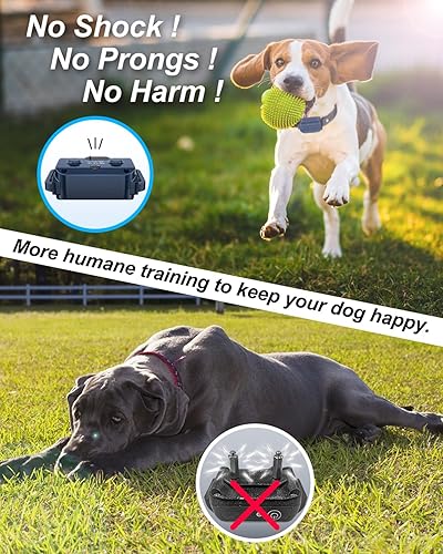 Compared to those electric shock collars, vibrating dog collar is absolutely safe and humane. No Static Stimulation! No Shock! No Prongs! The vibration collar does not cause any discomfort to your dog and is enough to attract 99% of dogs' attention, and can stop their bad behaviors (such as barking, biting) or recall.