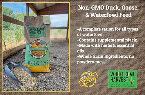 Premium Whole Grain Nutrition: Wholesome Harvest Non-GMO bird food is a complete 10-pound mix of cracked corn, wheat, soybeans, and sunflower seeds. With 18% protein, it’s the perfect duck food for pet ducks, geese, and other waterfowl for healthy growth and daily feeding.