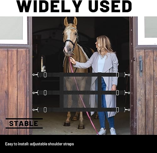 Adjustable Straps: the stall guards for horses are equipped with adjustable straps, you can adjust the guard based on your horse's size and the stall dimensions; This adjustable feature ensures the stable guard provides safety by nicely fitting most types of stall sizes and shapes