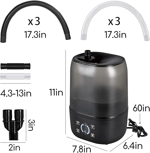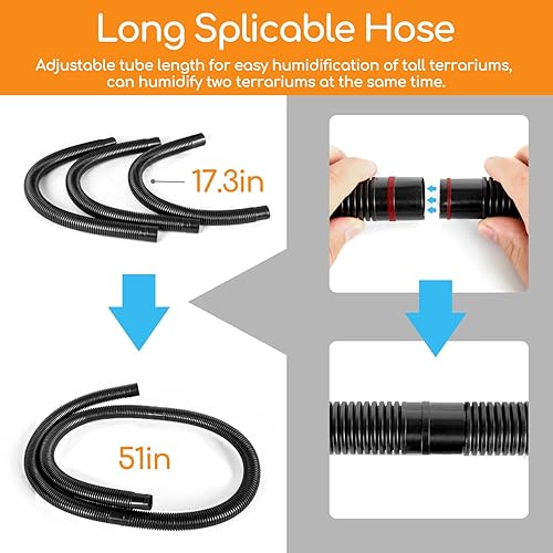 【Double Splicable Tubes】Coming with 3PCS white 17.3inch tubes and 3PCS black 17.3inch tubes, you can splice as many lengths as you need. Upgraded tubes with increased hardness can effectively avoid the problem of water pooling in water tubes. Support humidify two terrariums at the same time.