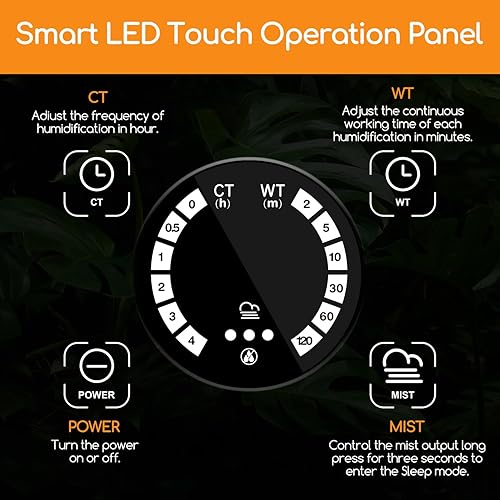 【Digital Timing Reptile Fogger&Top Filling】This terrarium humidifier has a built-in timer function, you can set the humidification time as needed. This reptile fogger is top filling, adding water directly from the top instead of opening the tank, and please clean the reptile fogger regularly every month to avoid leakage.
