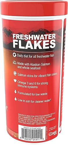 NUTRITIOUS RECIPE: Freshwater Flakes are blended specifically to enhance the levels of Omega 6 fatty acids. Omega 6 fatty acids are extremely valuable to freshwater species for strong immune systems and cell wall development