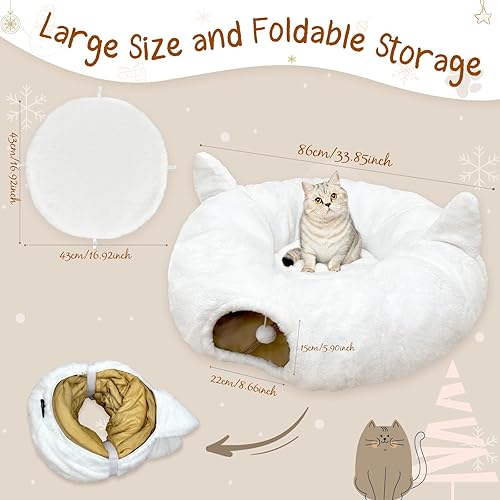 Multifunctional Christmas Tree Cat Tunnel: Besides being used as a cat donut tunnel, it can also be placed around the base of the Christmas tree as a tree collar, covering the tree stand and adding a touch of warmth and fun to the festival. The white plush material not only enhances the holiday decor effect but also perfectly matches various Christmas decorations, bringing you and your pet a double joyful experience.
