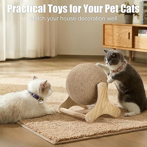 Cat Scratching Sisal Ball Toy for Indoor Cats - Ideal for killing boring time, and reducing stress. The total set is in size L7.9”xW5.7”xH7.1”, The ball in size Diameter 5.9”, fits for small pets.