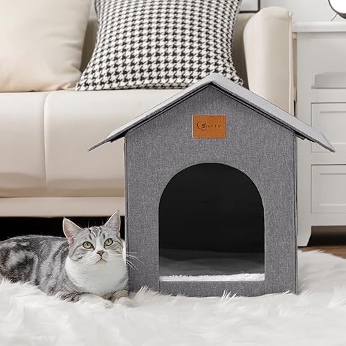 【Easy to Assemble & Care】: This collapsible cat house can be easily disassembled and installed, only by the velcro to connect and don't need tool. Siedihit cat house allows for hassle-free cleaning—simply soak it in water with cleaning agent, gently scrub with a brush, and let it air dry naturally