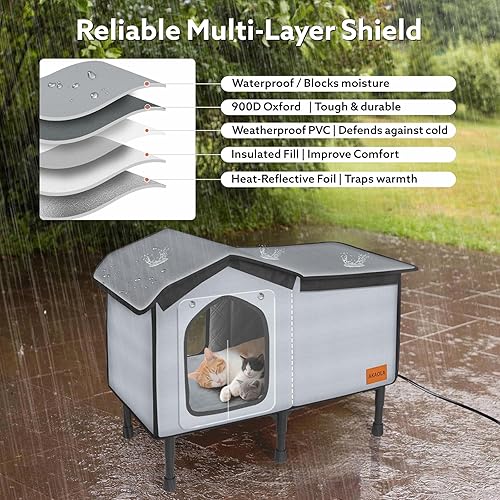 SAFE & ENERGY-EFFICIENT HEATED SHELTER:The included heater provides a constant, gentle warmth. Working with the insulated walls and the elevated base, it creates a cozy refuge for feral and barn cats even in freezing temperatures, while using energy efficiently.
