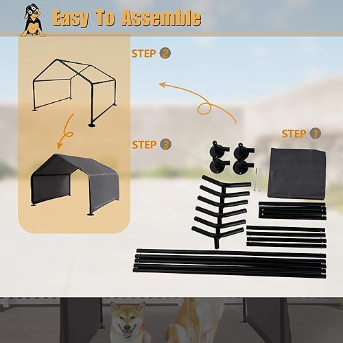 【Sturdy and Stable Frame】: The frame of the dog shade shelter is made of high-quality steel and treated with high-quality powder coating, which protects the dog tent from corrosion and rust and extends its service life. this dog shelter is built to last and withstand outdoor conditions, making it a reliable choice for outdoor use.