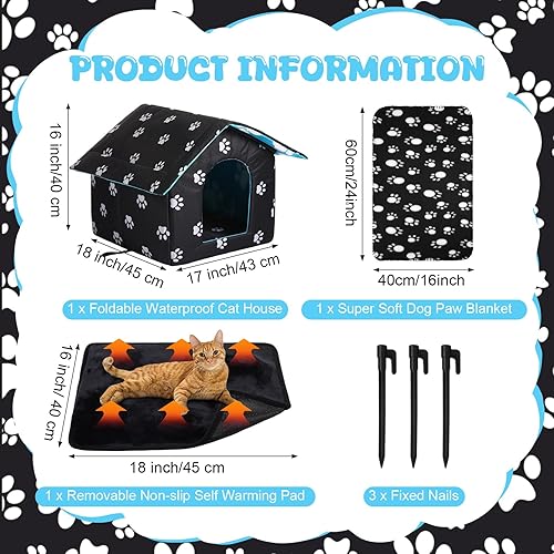Reliable Material: the outdoor waterproof cat house is made of waterproof Oxford cloth, with sponge lining, plush material inside, which is rainproof and windproof, thick, warm, comfortable; The pet self heating pad is safe and convenient; These outdoor pet houses feature a cute design, lovely and attractive; Which is not only functional but also decorative