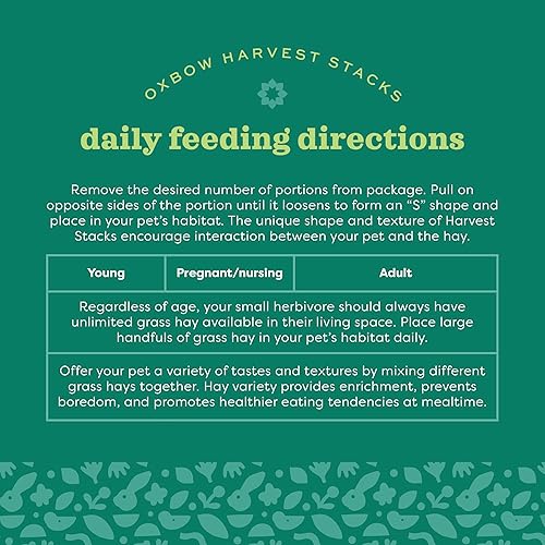 PREMIUM QUALITY: Made with 100% hand-selected and hand-sorted Oxbow hay. All Oxbow hay growers are trained in the production of premium hay
