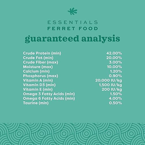 HEART & SKIN AND COAT HEALTH: Enriched with essential Omega fatty acids to support your ferret’s heart health and maintain a shiny, healthy skin and coat; this balanced nutrition helps keep your ferret active, comfortable, and looking their best every day