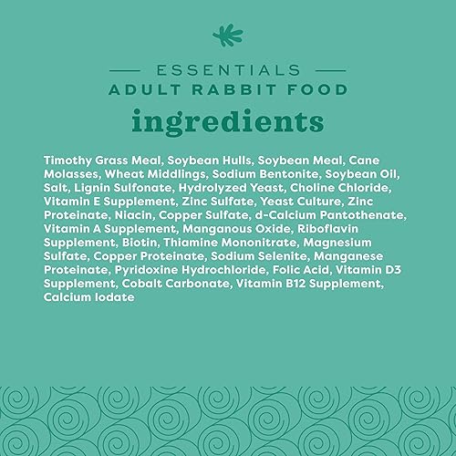 FEEDING INSTRUCTIONS: Adult Rabbits (over 1 year) Feed according to weight specifications provided. Feed in addition to unlimited grass hay.