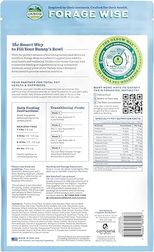 VET-FORMULATED & MADE IN THE USA: Formulated with the guidance of leading veterinarians & proudly made in the USA, Oxbow Forage Wise combines trusted science with quality ingredients, offering safe, effective adult rabbit nutrition pet parents can trust.