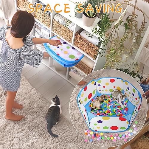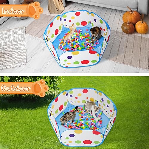 【Cat Toys Ball Pit 】: Give your cat the gift of care free entertainment.Fuel your cat's enthusiasm with endless indoor and outdoor play.Our portable ball pit for cats parks curiosity and joy wherever your furry friend plays. This Indoor big ball pit ensures a relaxing play area.