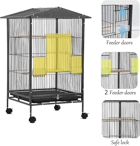 SPACIOUS DIMENSIONS: Large bird cage measuring 22.4"L x 17.7"W x 33.1"H inches, perfect for Cockatiel Quaker Parakeet Pionites Lovebird Iory Amazon parrot Sun Parakeet Common Hill Myna Crested Myna Turdus merula Budgerigar Budgie Canaria Canary Titmouse/Chickadee Starling Red-fronted Green-cheeked Conure
