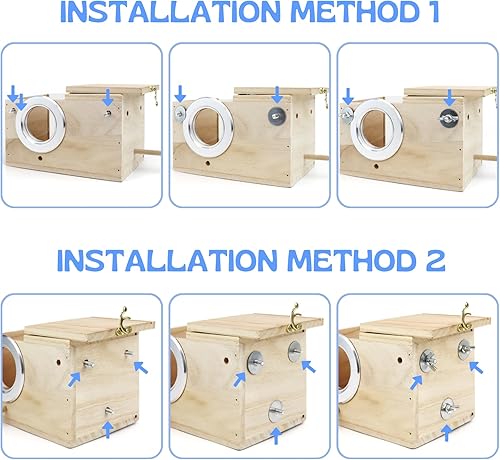 Easy Installation: For added convenience, our parakeet nesting box comes with perches and hanging hardware. It can be easily assembled and securely attached to the side of your parakeet's cage, seamlessly integrating with their existing living space.