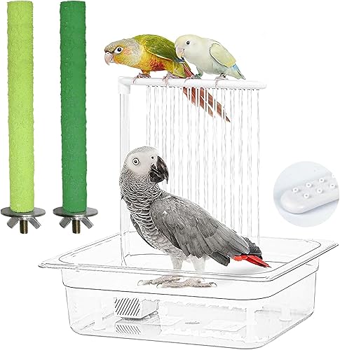 Sturdy and Safe:Made from non-toxic, odorless materials, our bird bath shower is both lightweight and durable. It comes with 3 small chewing balls, and its size is 12.8 * 11 * 13.4 inches, making it especially suitable for large bird bathtubs.