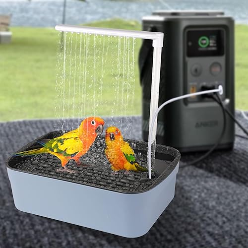 USB Automatic Bird Bathtub: The parrot bath adopts a large-area shower design and automatic circulation with double rows of 26 water outlets. The water is evenly distributed and falls like natural rain, allowing your pet friends to shower and play happily. No batteries required, just plug in. Ready to use