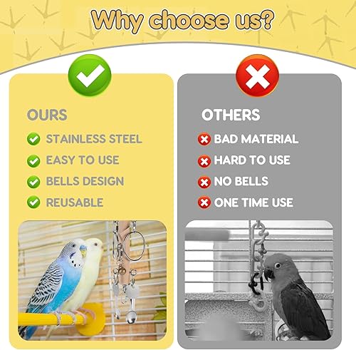 Clear, Bell Sounds: The copper bells produce a crisp, clear sound that birds love, and the stainless steel construction ensures the bells withstand even the toughest beaks, providing long-lasting enjoyment.
