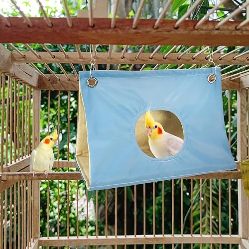 【Cozy & Waterproof Material】Made from high-quality waterproof fabric with Cotton linen lining., ShuRung bird nest features a waterproof design that ensures dry, keeping your parrots or birds snug comfortable. Parrot hideaway cave bed tent provides a perfect spot for resting, hiding, playing, and sleeping.